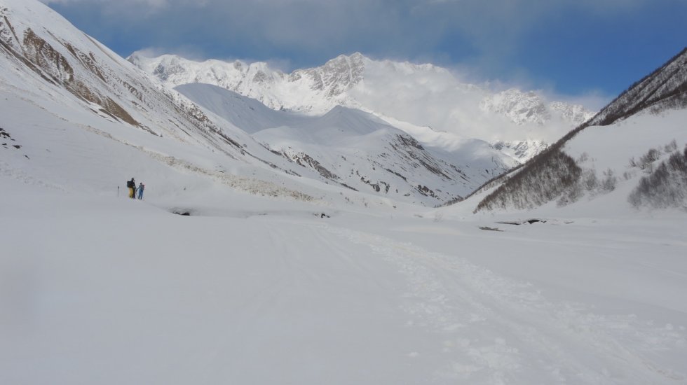 Swanetien ist eine Bergregion in Georgien. Sie liegt im Westen des Landes an der russischen Grenze. Rund um die Dörfer von Mestia und Ushguli bieten sich eine Vielzahl von schönen Skitouren und rassigen Freerideabfahrten, welche vor der zwölf Kilometer breiten und bis zu 5200m hohen Bezengi Mauer liegen. Vor dieser Kulisse der Eis- und Felsriesen von Ushba und Shkhara liegen die idealen Skitourengipfel mit den genialen Schneehängen. Unter Präsident Saakaschwili sollte Mestia 1500m ü.M. das „ Zermatt des Kaukasus“ werden. Ein kleines Skigebiet wurde erstellt, der Ort wurde modernisiert, jedoch ist man noch Heute fast alleine unterwegs.